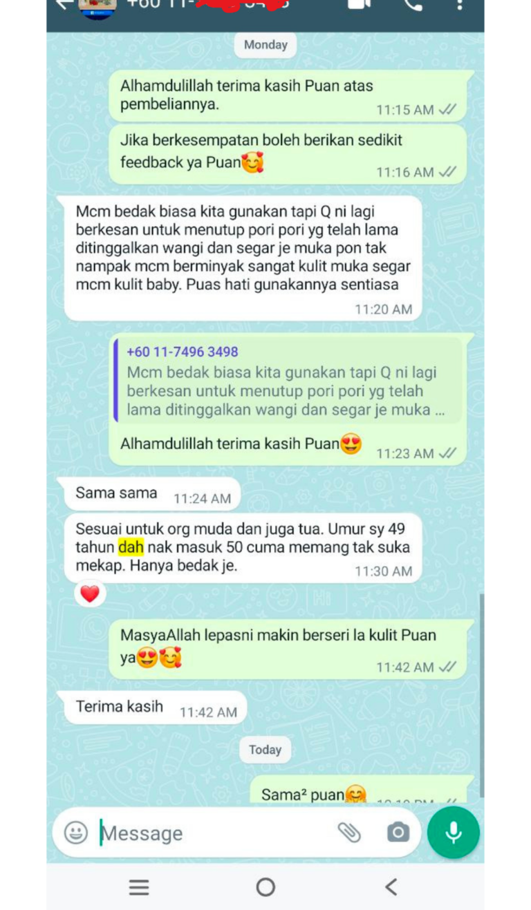 *PENAFIAN: Keberkesanan produk ini bergantung kepada kesesuaian individu. Setiap hasil dari penggunaan adalah berbeza bagi setiap individu. Produk ini akan memberi kesan terbaik sekiranya pengguna mengamalkan dengan cara betul berdasarkan banyak testimoni yang diperolehi. Kita berikhtiar, tuhan yang menyembuhkan.