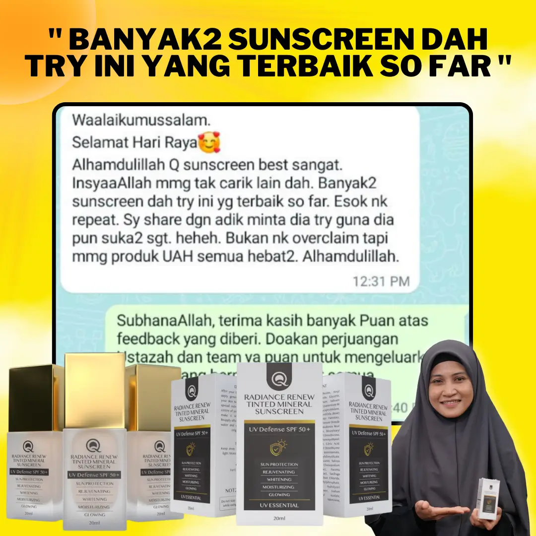 KEDUA : Anda boleh je cari alternatif lain kat TikTok, Shopee dan tempat lain yang jual produk murah tak berkualiti. Boleh beli produk fake yang berlambak kat pasaran. Tapi, macam biasa. Anda akan tersalah pilih produk. Lepastu result yang anda nampak. Tak banyak sangat perubahan. Ustazah nak nasihatkan anda. Sila pastikan yang anda gunakan produk ORIGINAL yang dijamin selamat dan berkesan.
