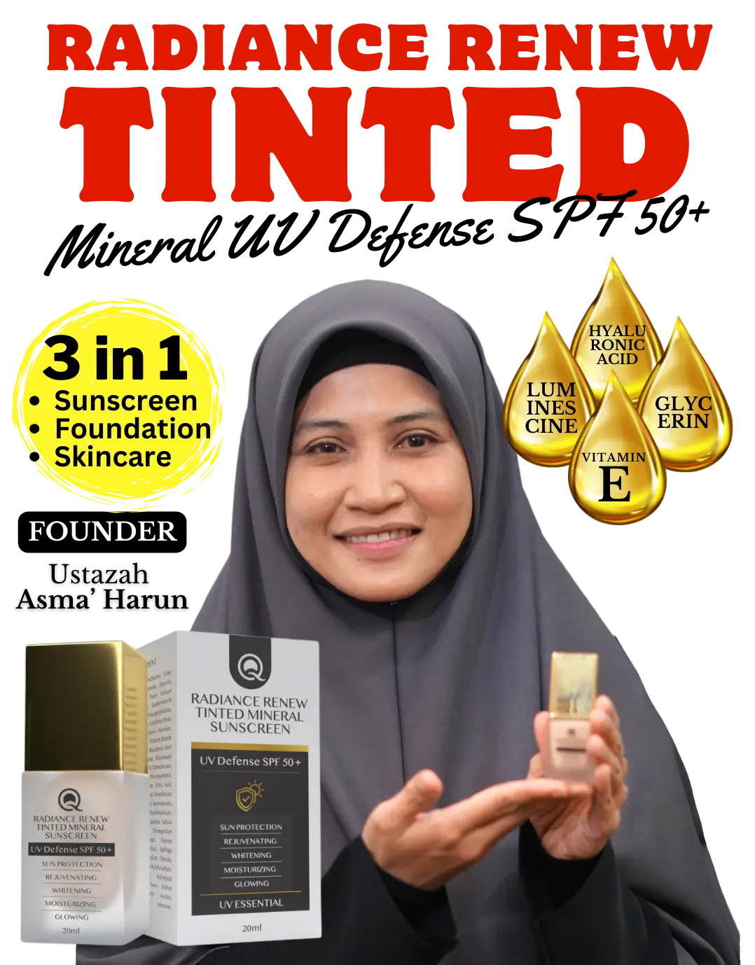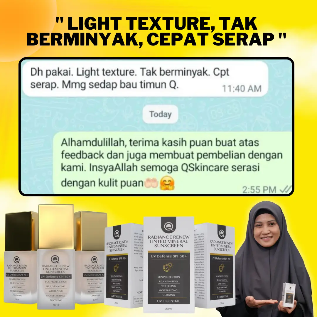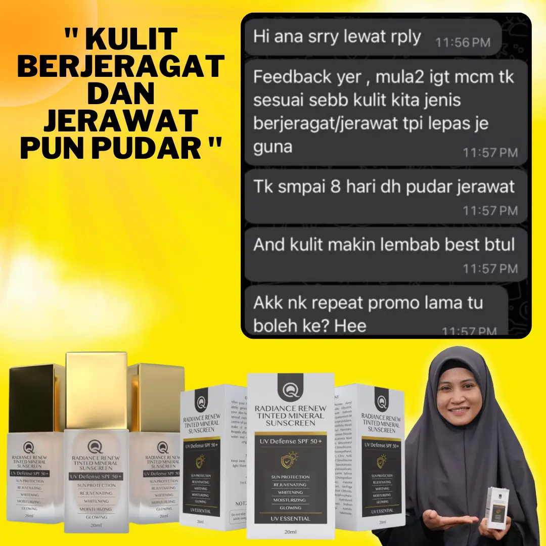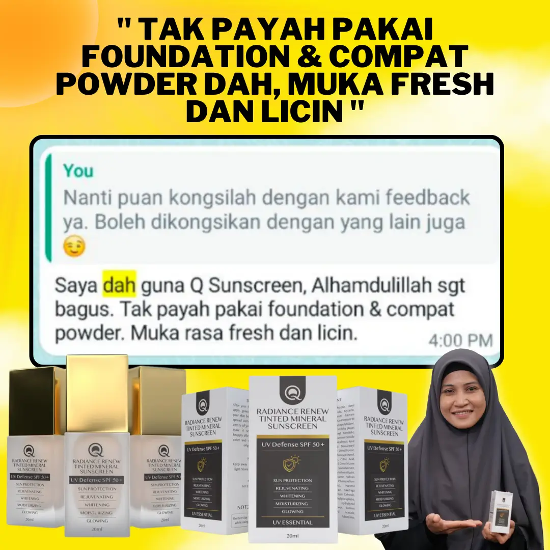 Jangan risau. Anda perlukan SUNSCREEN 3 in 1 dari QPerfection dengan segera! Dapat kebaikan dari cahaya matahari tanpa risikokan kulit.
