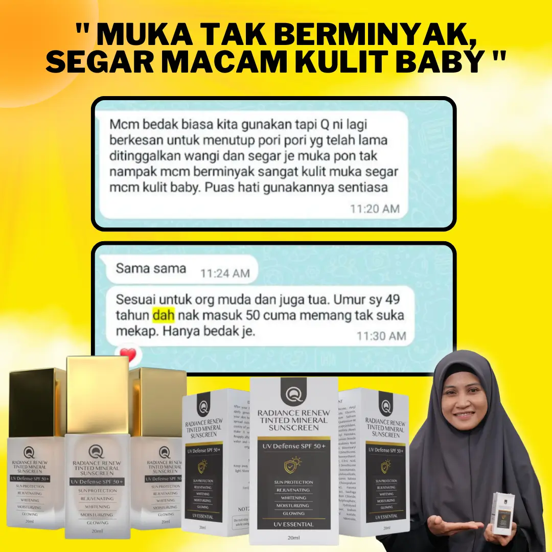 Q Perfection memuaskan hati… sekiranya tiada sedikit pun perubahan berlaku. Selepas anda amalkan selama 3 bulan. Ustazah akan pulang balik duit. Tanpa sebarang soal. Ustazah nak anda MENANG membeli, menang memakai. Lebih ramai orang yang guna produk ni. Lagi ramai yang dapat manfaat. Semoga usaha kecil ustazah ni, dapat bantu ramai orang kat luar sana. Termasuklah anda.