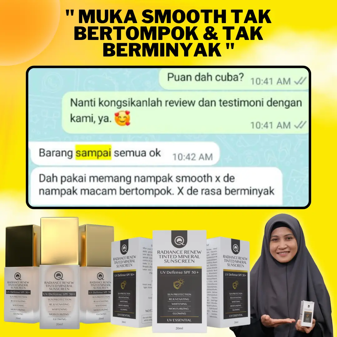 KETIGA : Anda bagi peluang untuk cuba Q Perfection sekarang. Amalkan setiap pagi, malam sampai anda dapat lihat kulit wajah semakin sihat. Nampak muda dari biasa. Kengkawan akan mula perasan dan akan tanya. Produk apa yang anda guna. Kelebihan memilih Q Perfection bebanding produk lain ialah, ustazah sendiri akan guide anda cara guna. Produk pun mesra wuduk.